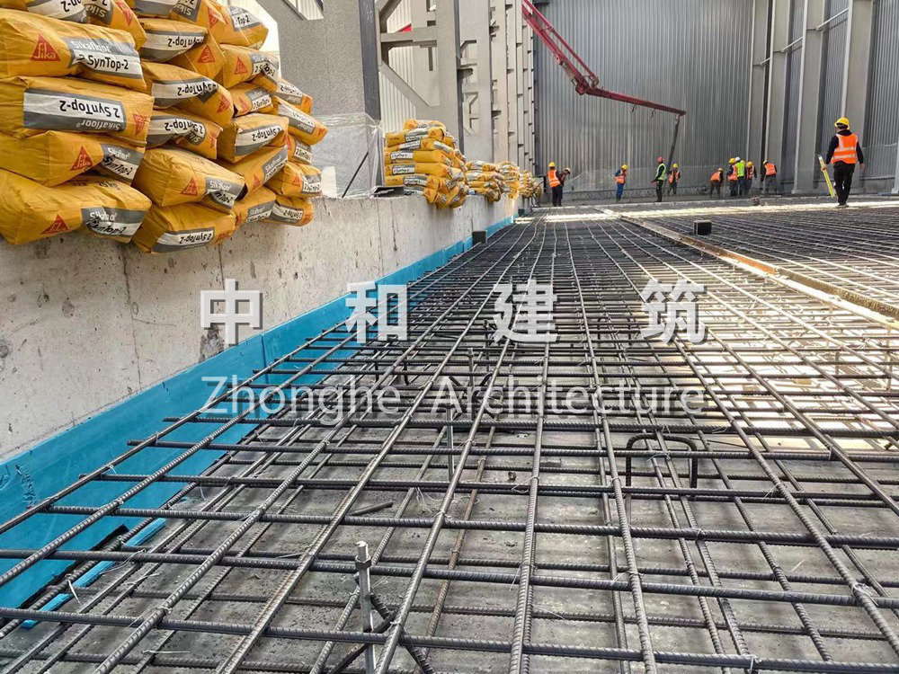 地坪系統(tǒng):鋼筋+鋼纖維混凝土整體地坪:Sikafloor2-2+Curehard 24 系統(tǒng),5800平米,超平地面;