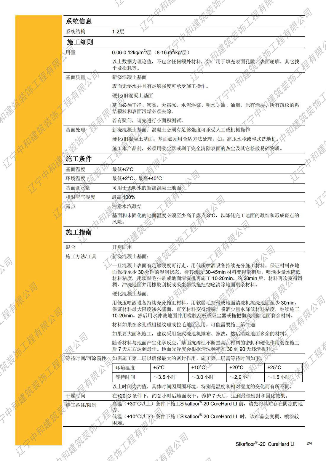 Sikafloor-20 CureHard LI(鋰基)說明書