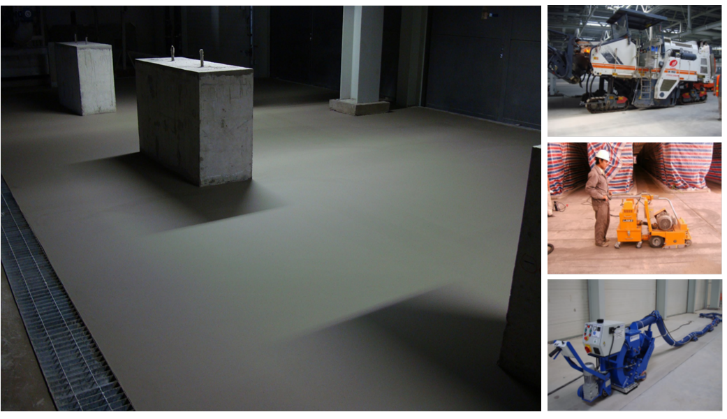基面處理:在施工過程中,根據(jù)實(shí)際厚度要求,對基面選擇銑刨、拋丸等機(jī)械處理方式。